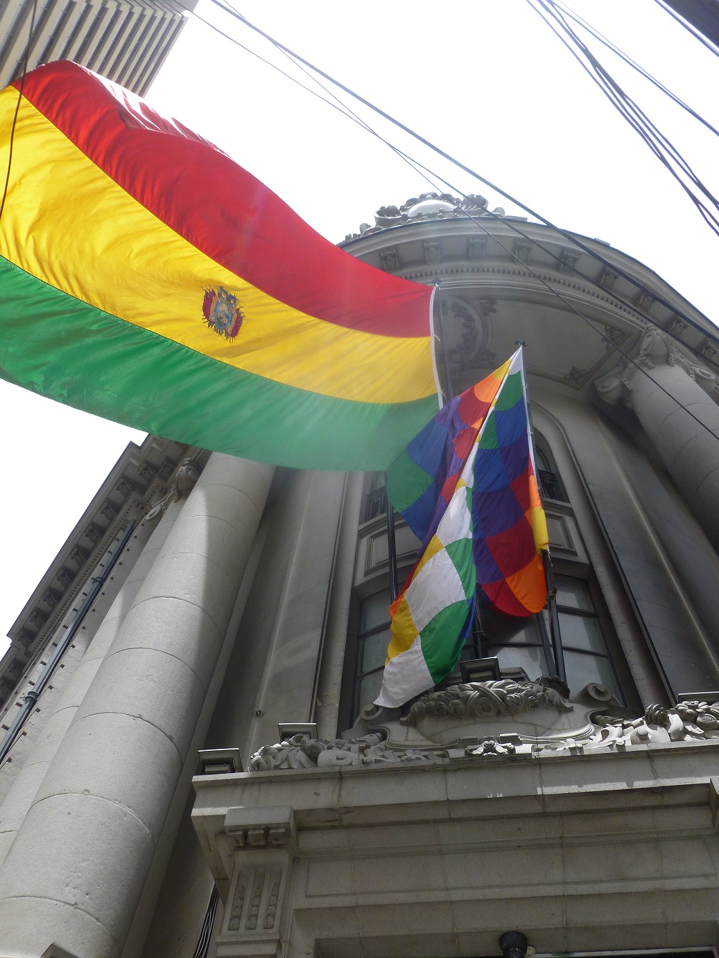 10. Le drapeau Aymara figure en permanence aux côté du drapeau national sur les bâtiments officiels