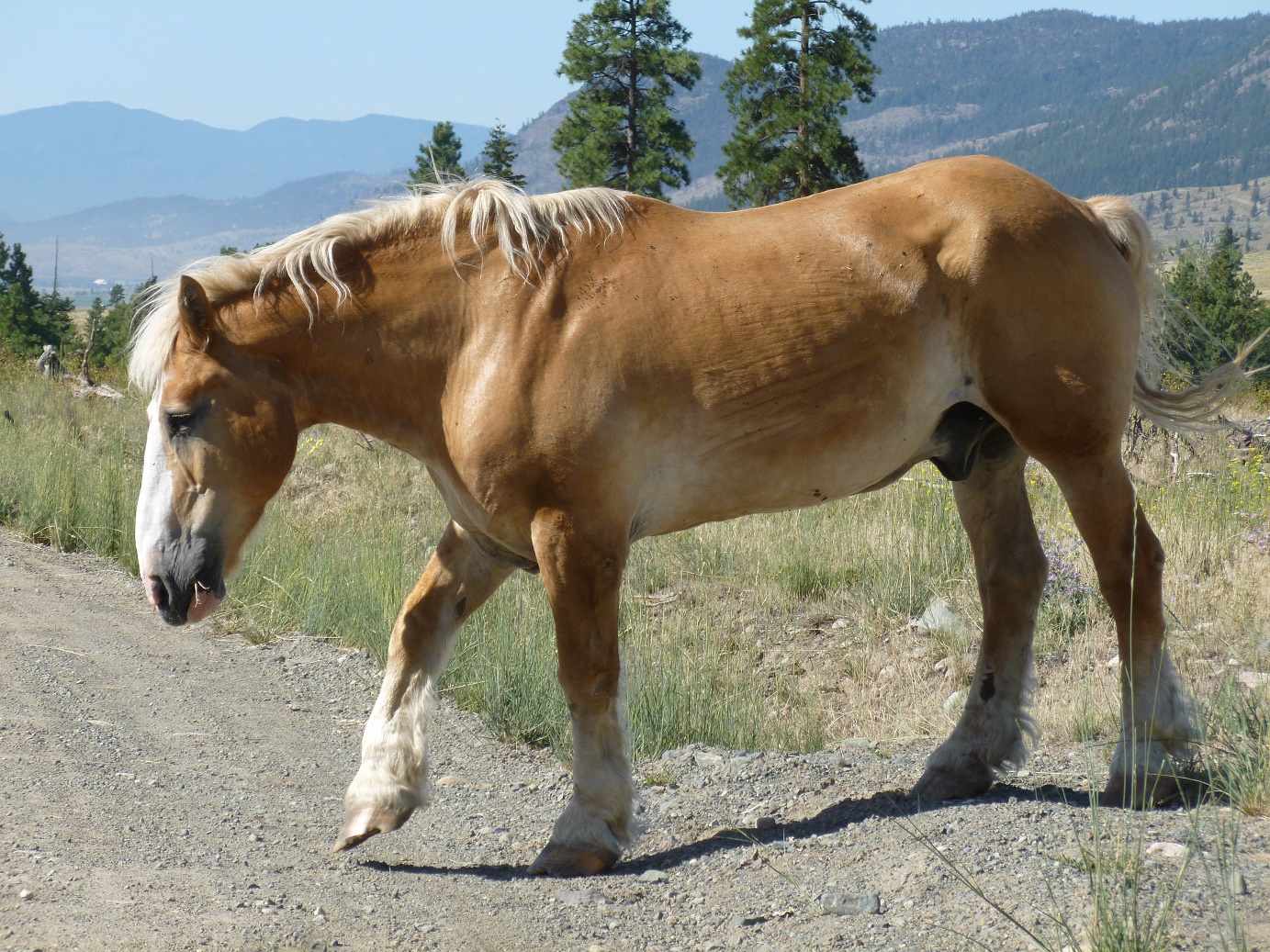 37. Départ du ranch et premier piéton croisé qui traverse la chaussée